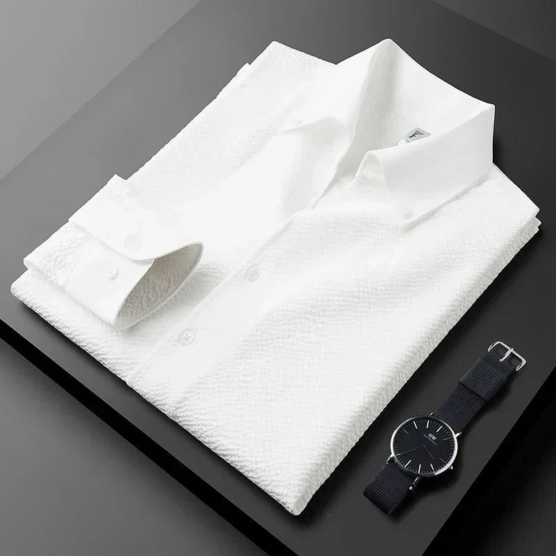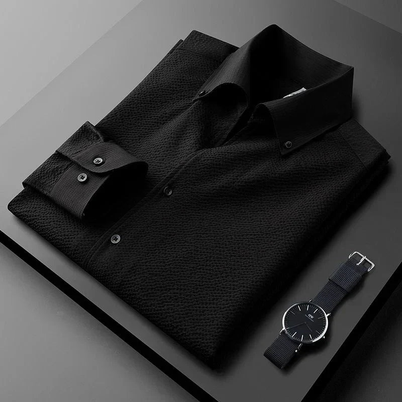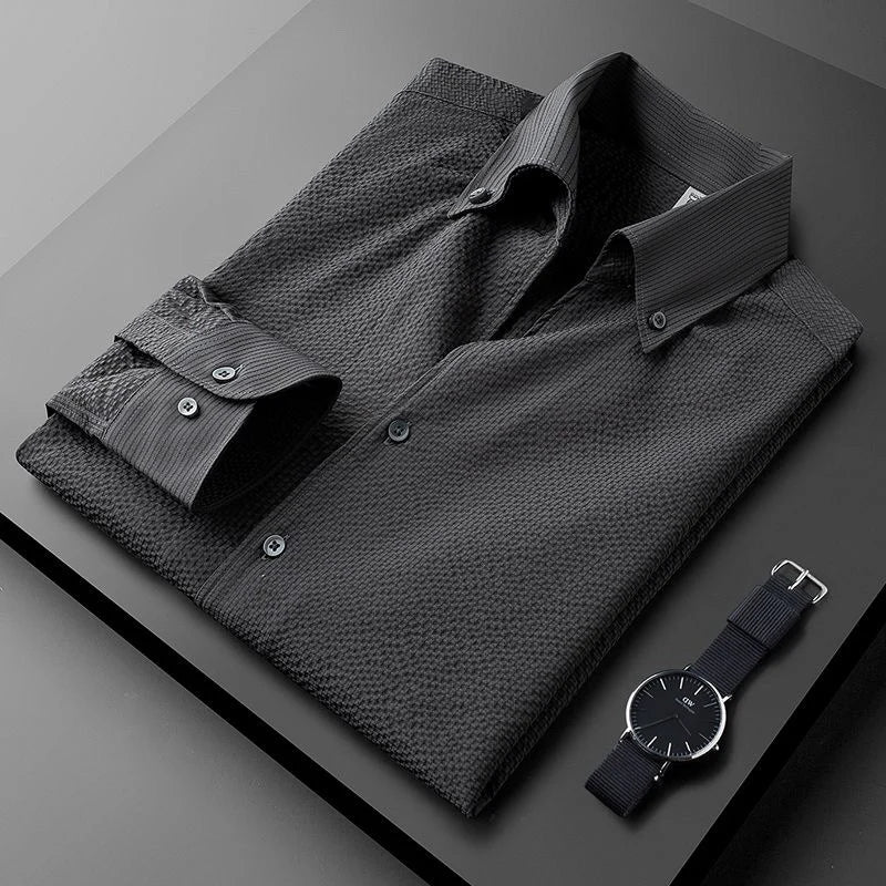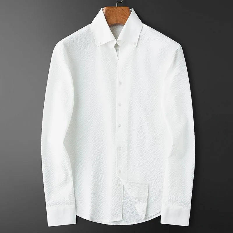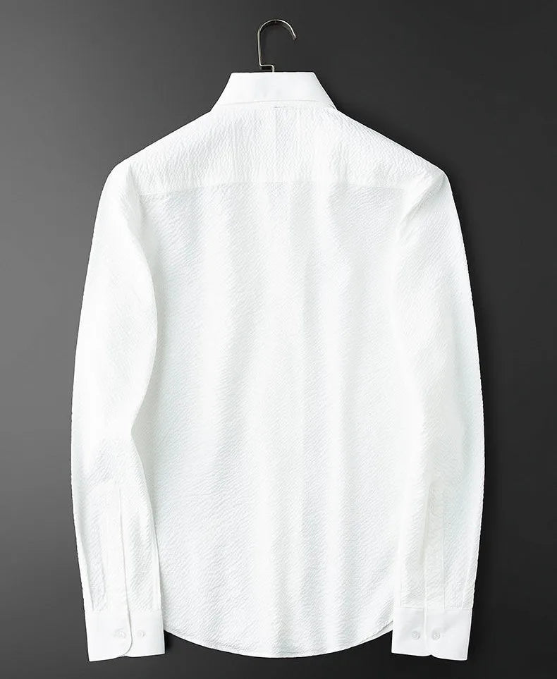 Upgrade your wardrobe with our premium men's long sleeve wrinkle-resistant shirt, perfect for the modern professional. Crafted from high-quality fabric, this shirt offers a crisp, polished look all day long without the need for ironing. Its sophisticated texture and comfortable fit make it an ideal choice for both business meetings and casual outings, ensuring you always look your best with minimal effort.