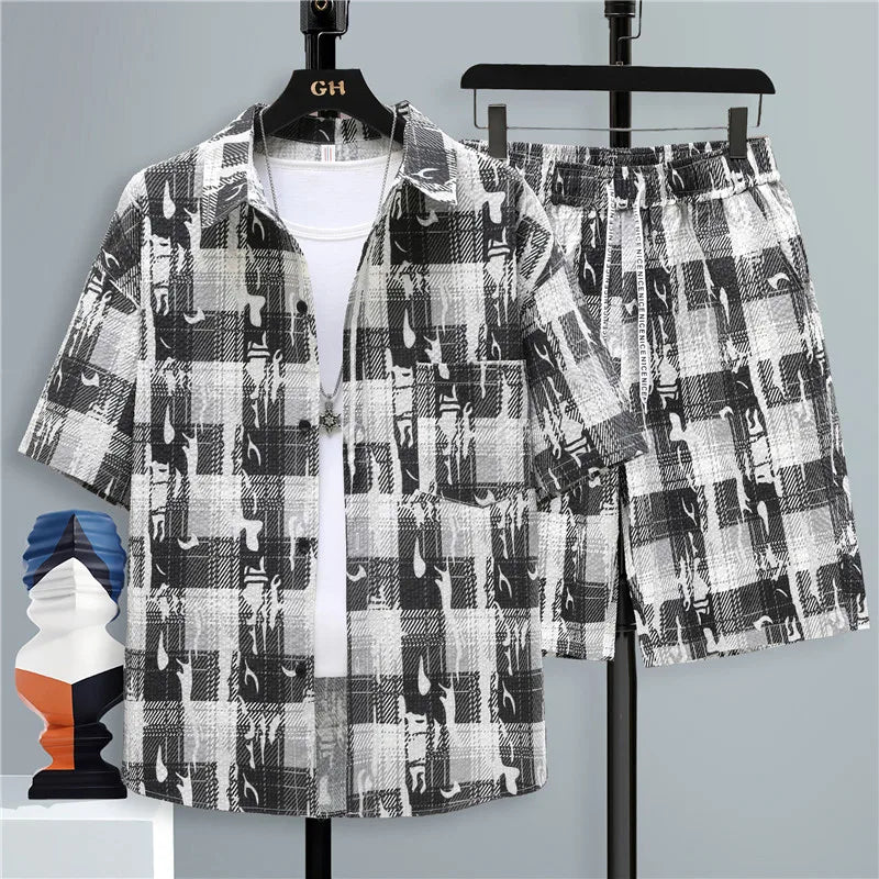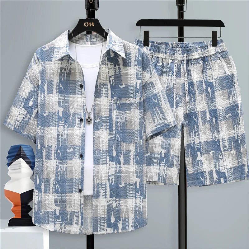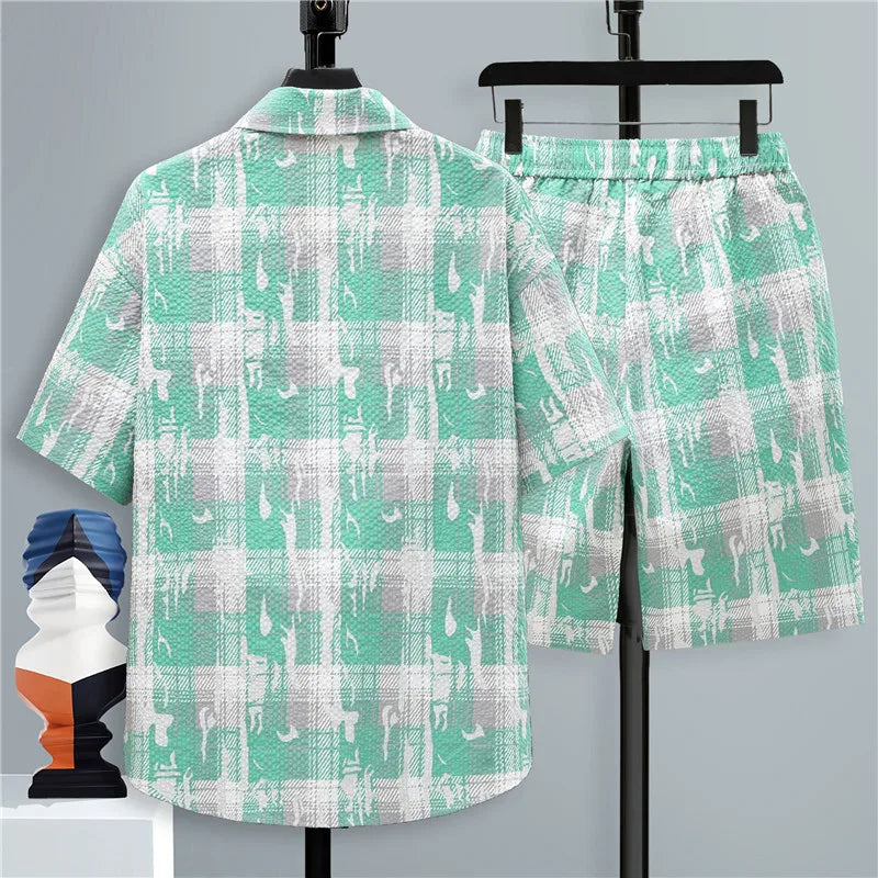 Introducing our trendy men's summer shirt and shorts set, designed for ultimate comfort and effortless style. This lightweight set features a cool green plaid pattern, perfect for staying fresh and fashionable in warm weather. Ideal for beach outings, casual gatherings, or relaxed weekends, this set combines a breezy short-sleeve shirt with matching shorts, ensuring you look and feel your best all summer long.